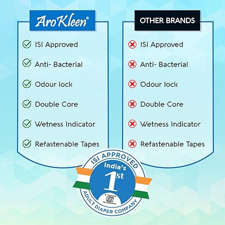 - INDIA’s 1ST ISI Tested & Certified: AroKleen Rash-Free Adult Diapers are made up of Breathable Cotton Soft material which provides maximum comfort and ensures long-lasting freshness.