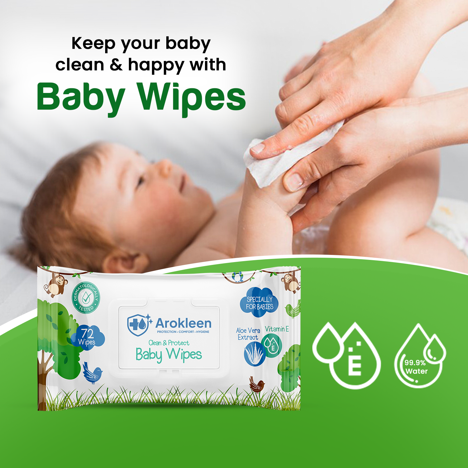 - Excellence in Baby Care: AroKleen, a renowned and dependable brand, is dedicated to delivering exceptional quality and care. Our Pure Water Cleansing Baby Wipes are meticulously designed to provide unparalleled comfort and cleanliness.