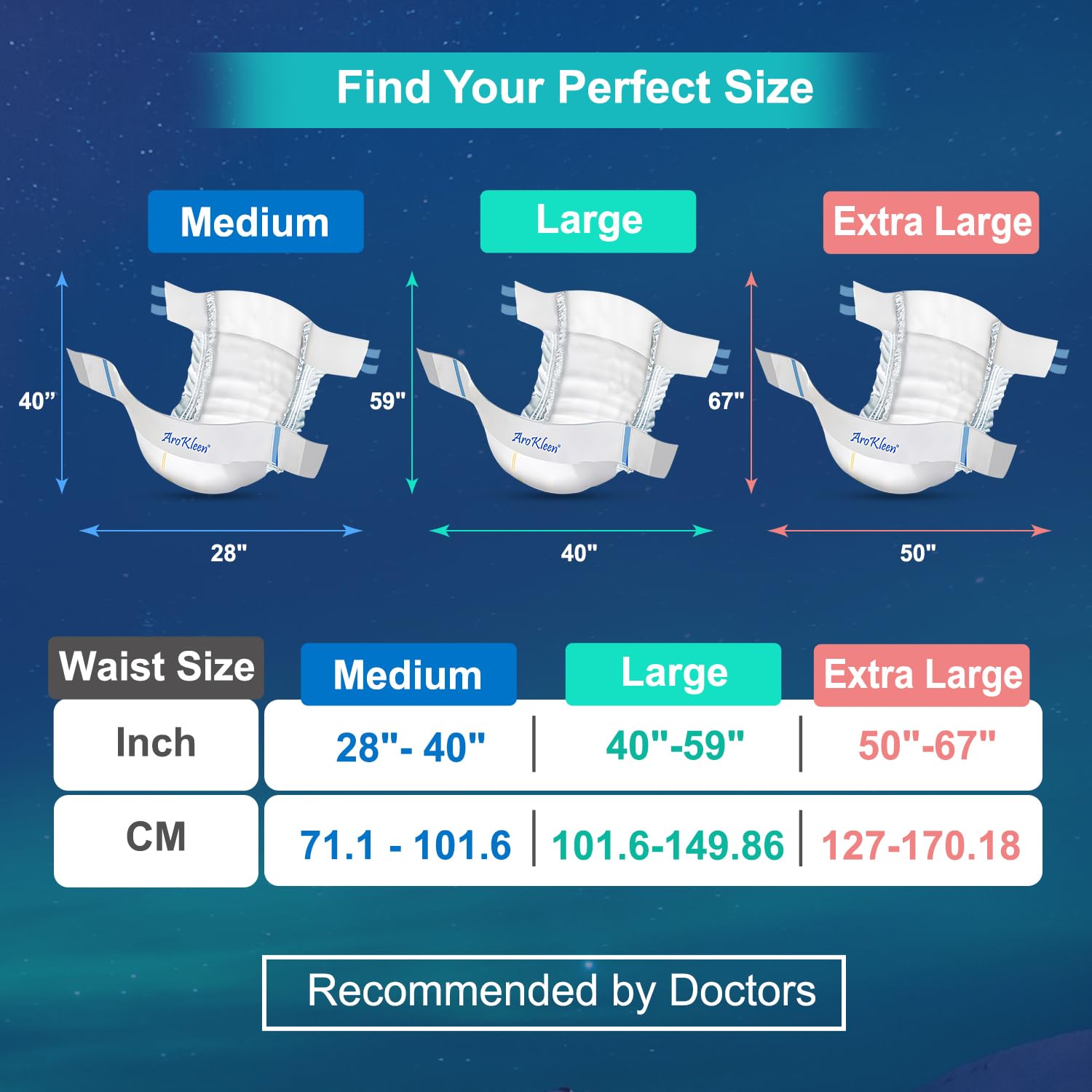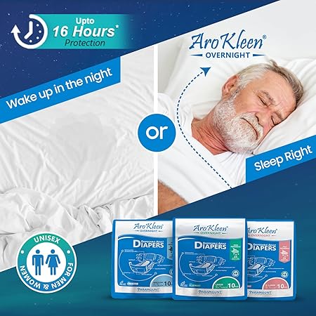 AROKLEEN Overnight Adult Diapers – Tape Style With Wetness Indicator