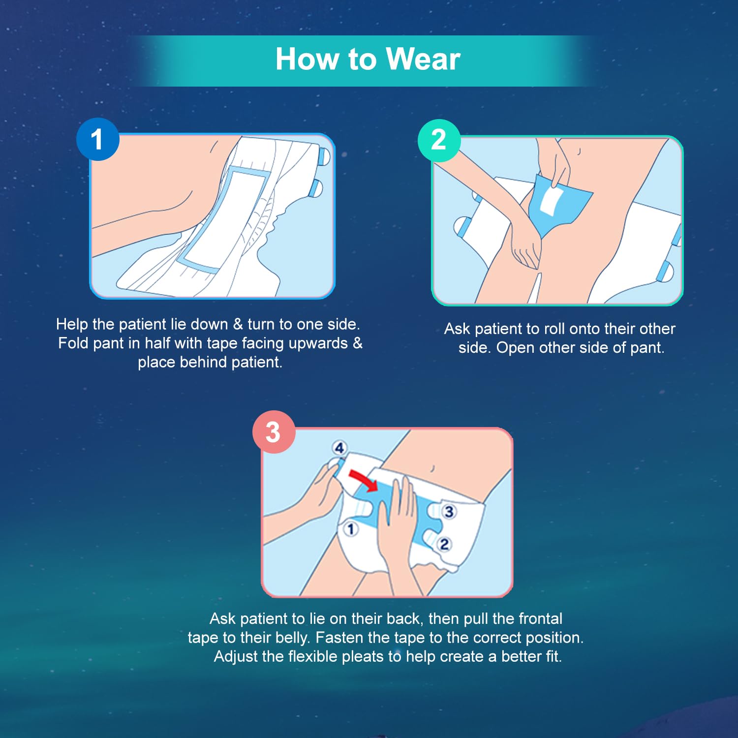 - Anti-Leak Guards: Leakage protection and acquisition layer quickly pulls and directs fluid away from the skin. Adult incontinence diapers with anti-leak barrier provide discreet, garment-like, and natural feel.