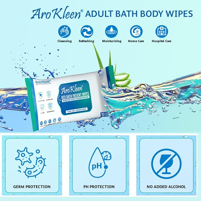 - With their larger size and soft, textured surface, AROKLEEN bed bath wipes offer thorough cleansing and removal of dirt, sweat, and impurities.