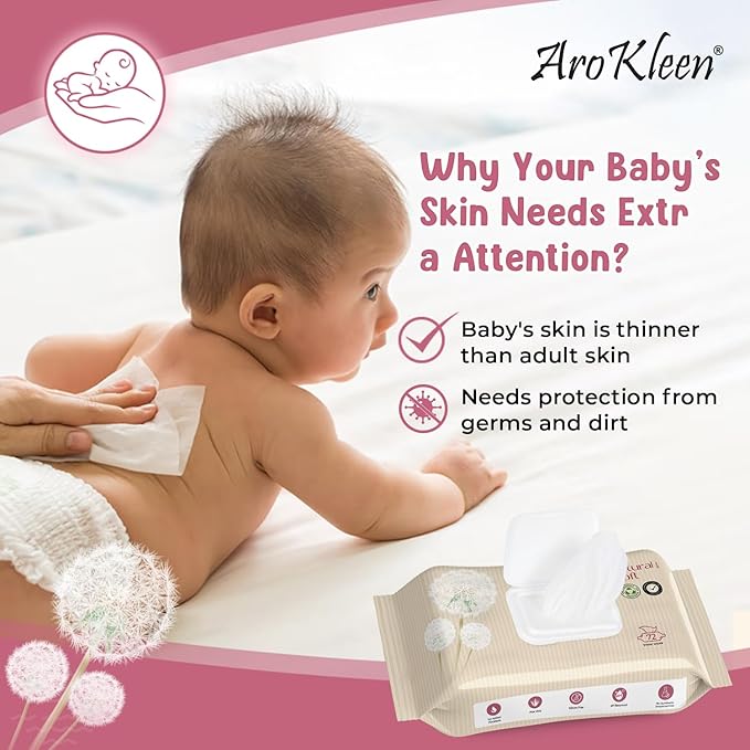 - Free from Harmful Chemicals: Arokleen Pure Water Wipes are thicker wet wipes free from typically used harmful chemicals, Silicon Free, pH Balanced, No Added Parabens, No Synthetic Preservatives ensure no harm to baby’s delicate skin.