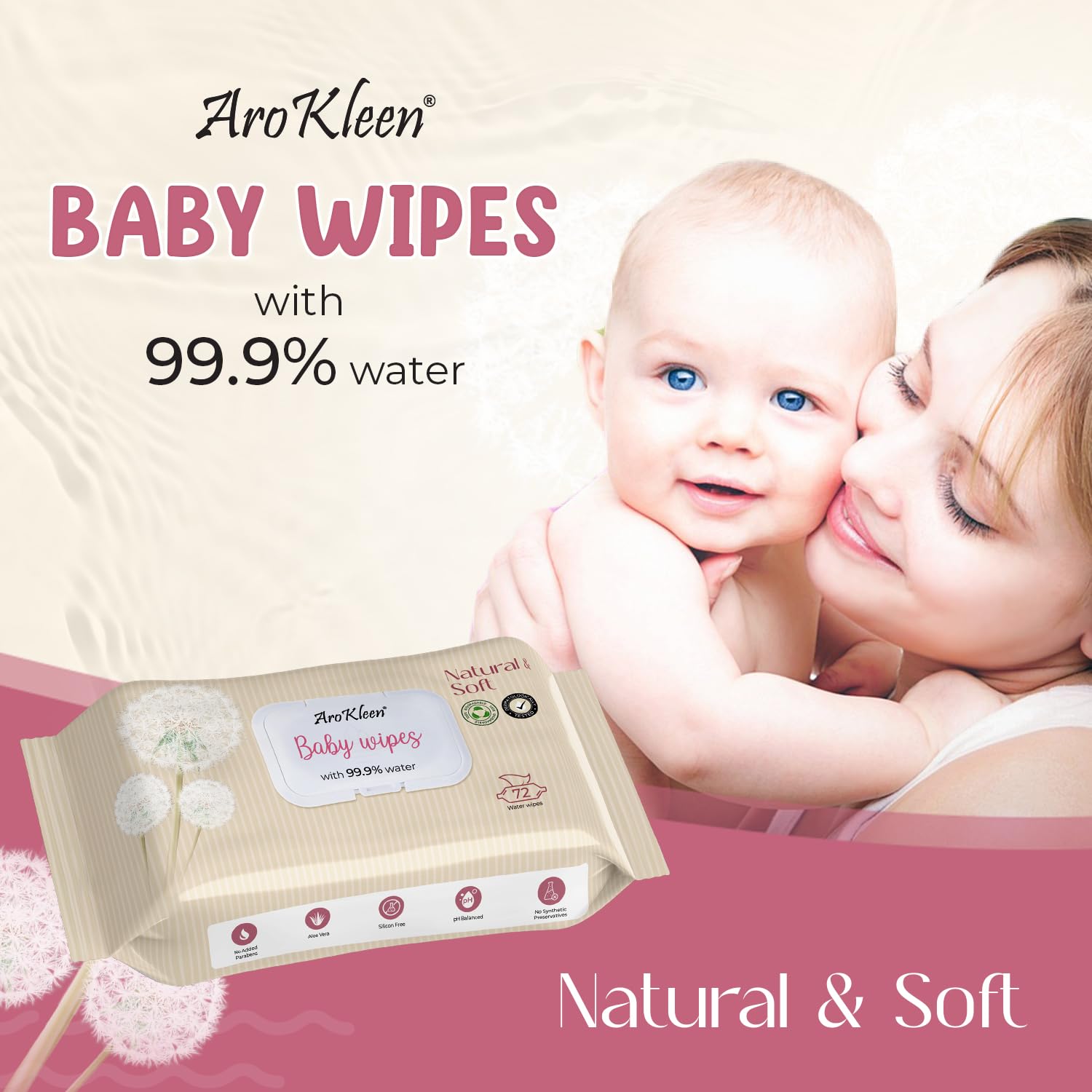AROKLEEN Pure Water Soft Cleansing Baby Wet Wipes – Aloe Vera & Vitamin E